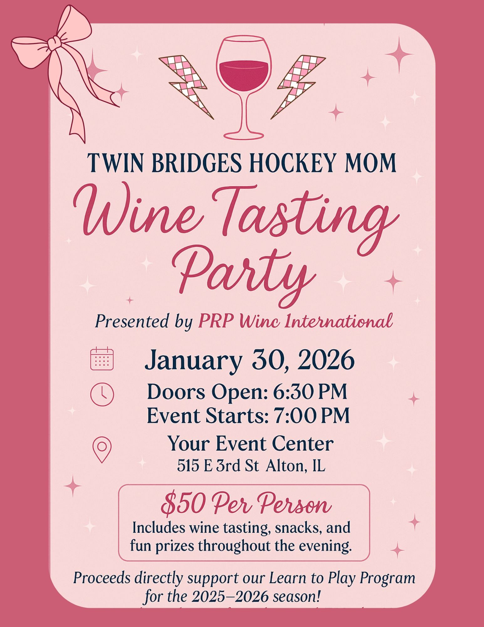 In partnership with PRP Wine International, we are hosting our first ever Hockey Mom's Wine Night.